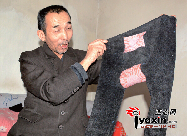 1月18日,亚心网记者来到方丽秀家,她的爱人罗继贵从一个手提纸袋中拿出了一条热能裤。正反面均为黑色,摸上去比普通秋裤厚,但比一般保暖裤薄,两条裤腿的膝盖处也没有加厚。将裤子内侧翻出来可以看见小腹、后腰及裆部各加了一块布料。