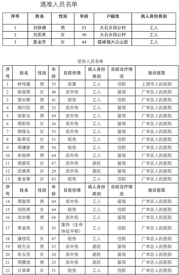江西上饶广丰花炮厂爆炸追踪:伤亡人员名单公布