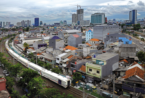 印尼雅加达市区,火车从居民区中间穿梭而过 羊城晚报特派记者 汤铭明 摄