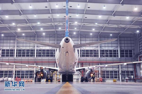 1月21日,南方航空海口维修基地,南航工作人员在检查飞机发动机。春运临近,南方航空公司对所执管飞机重要系统、客舱设施进行安全普查,排查可能会影响飞机安全性的各类隐患,确保春运期间航空运输安全顺畅。新华社发(楚洪雨 摄)