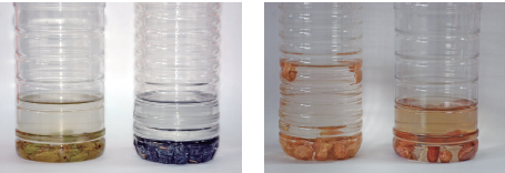 1月20日,记者从市场买来花生和葡萄干做实验。左图:通过10分钟的浸泡,左瓶泡的普通葡萄干和右瓶内泡着黑加仑葡萄干的水都没变色;右图:通过10分钟浸泡,左瓶内泡的普通花生的水没变色,右瓶内泡着红皮花生的水有轻微淡红色。亚心网记者史纪伸实习生朱小辉摄