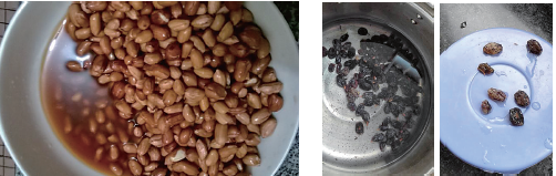 红皮花生放在盆里洗,水变成红色。张先生供图 黑加仑葡萄干洗后,部分掉色发白。郭女士供图