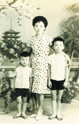 童年杨渡(右)和母亲、弟弟合影