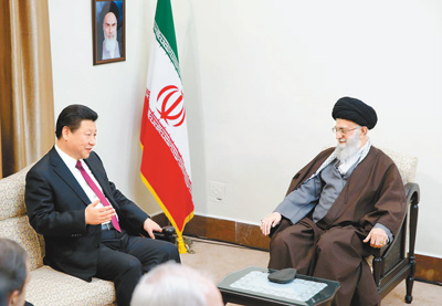 1月23日,国家主席习近平在德黑兰会见伊朗最高领袖哈梅内伊。