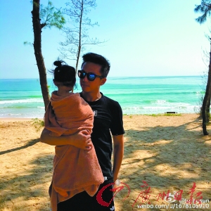 孙俪晒出邓超与女儿海边度假照。