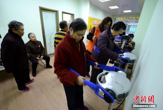 资料图 图为许多老人到社区居家养老站娱乐、锻炼身体。 王东明 摄
