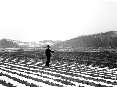 地是村民老揣家的,去年种的豆子。河套两边都是农田,夹在南山和北山间,一条东西向的大马路穿村而过。白菜地正北面三四百米处,就是会民村。
