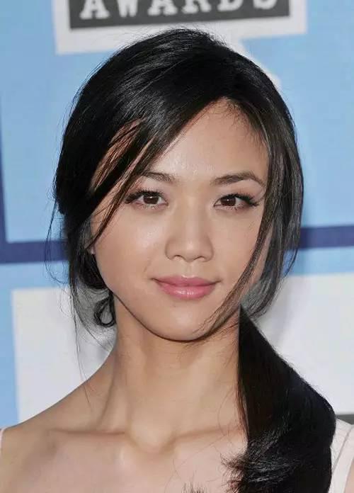 汤唯的下颌角很明显,下巴也长,搭配慵懒的扎发非常知性。