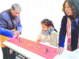 福田书法艺术家在现场写春联。