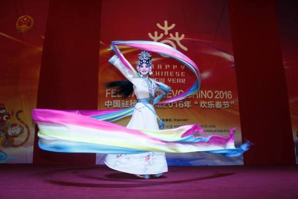 新华网北京1月27日电 在2016年中国猴年新春来临之际,中国驻秘鲁大使贾桂德26日晚在使馆举行“欢乐春节”招待会,来自浙江的婺剧艺术家为中秘嘉宾献上的一台极富感染力的中国传统戏剧与民乐演出,古婺风情烘托出红火吉祥的节日气氛。