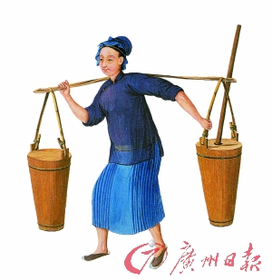 清代外销画《挑粪的妇女》,真实再现了“倒屎婆”的形象。