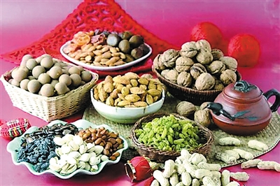 中国农业大学食品科学与营养工程学院副教授范志红指出,坚果味道浓香,人人喜食,营养丰富又便于储藏,并且坚果中富含维生素E、多种B族维生素,以及铁、锌、钙、镁等各种矿物质,还有一定数量的蛋白质,这些物质都有利于人们在冬天抵抗寒冷。从这个角度来说,坚果也非常适合用来春节送礼。尽量不要选择烤制、炒制或炸制的坚果,购买时要注意查看营养标签,首选钠含量低的产品。另外还要注意,必须保证新鲜度,包装越小越好,不同食材的组合最理想,可以满足多样化的需求。