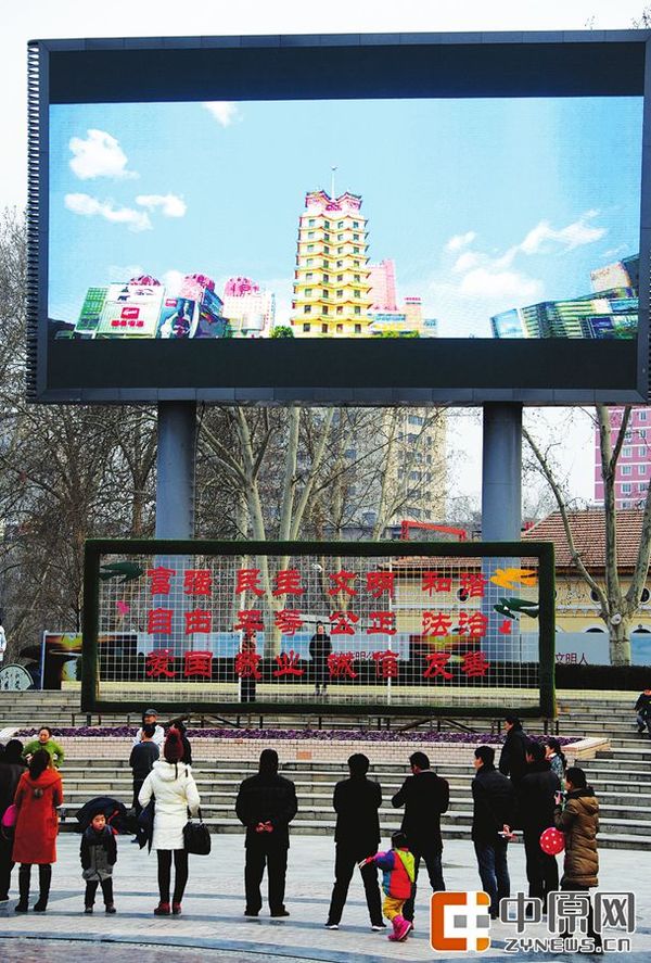 中原网讯(郑州报业集团全媒体记者 刘伟平 王思俊 张潇 谢源茹/文 郑州晚报记者 周甬 张翼飞 宋晔/图)金水区户外大屏在播,中原区户外大屏在播,二七区在播,管城区在播,惠济区也在播……这两天,市内五区户外LED显示屏都在集中播放新版的《郑州欢迎你》,市民看到纷纷赞叹视频“高端大气上档次”“得劲儿”,不少市民表示,视频唱出了大郑州的气势,唱得咱大郑州越来越国际范儿!