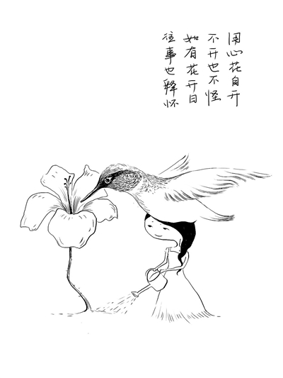 终于有一天,她给我穿上蜂鸟的新衣,采集蜜的甘甜。有心花自开,不开也不怪,如有花开日,往事也释怀。
