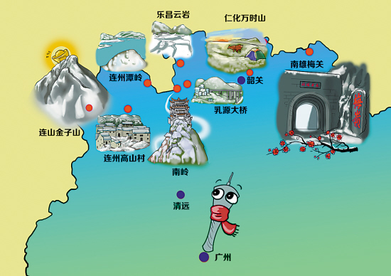 粤北赏雪地图 冯伟明绘图