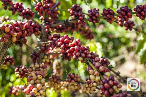 这是2015年12月2日在越南林同省宝林县新乐乡拍摄的挂满枝条成熟待收的咖啡豆。新华社发(春龙摄)
