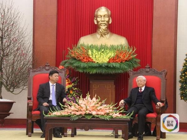 图为1月29日,在越南河内,越南共产党中央总书记阮富仲会见习近平总书记特使、中联部部长宋涛。新华社记者乐艳娜摄