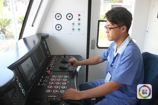 图为2015年10月29日,在河内讲武展览中心,工作人员操作吉灵—河东线城铁列车样车。吉灵—河东线城铁是河内首条城铁线路,由中铁六局担任总承包商,项目相关的设计、制造、供货及服务等均采用中国技术和中国标准。(新华社记者乐艳娜摄)