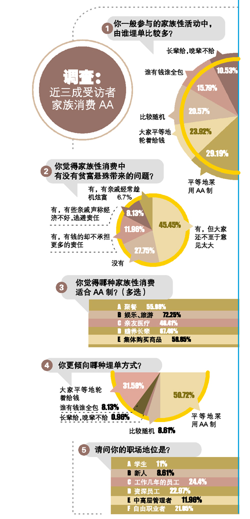 本报调查显示近半受访者赞成家族消费应AA制分摊