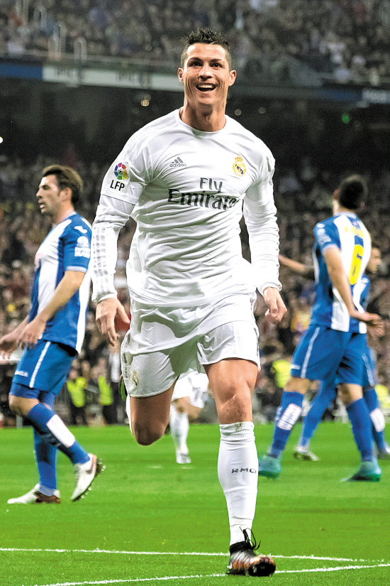 羊城晚报今晨消息 记者刘毅报道:西甲第22轮今晨展示一场进球表演赛,皇家马德里主场以6比0狂胜西班牙人,C罗完成“帽子戏法”,这位葡萄牙巨星为自己2月5日的31岁生日提前献礼。在西甲积分榜上,少赛一轮的巴塞罗那以51分领跑,马德里竞技以48分排名第二,皇马以47分排名第三,维拉里尔以44分位列第四。