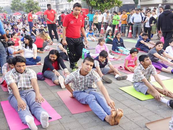 在印度著名健康教育大师米奇·梅塔的指挥下,孩子们都迎着太阳伸开了双臂,那些瑜伽指导教师则穿梭于孩子之间,耐心纠正他们的姿势。
