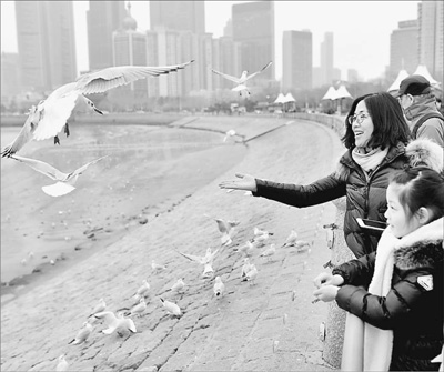 红嘴鸥爱上青岛人