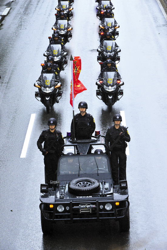 “羊城突击队”冒雨亮相 羊城晚报记者 黄巍俊 摄