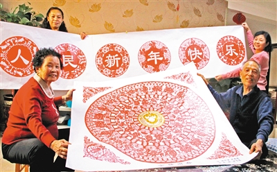 本报讯 近日,临潼区魏永信、朱秀兰、李璐、郭飞飞4位剪纸能手用了6天时间,创作了“金猴闹春”大团花和“祝全市人民新年快乐”长卷,这两幅作品由211只形态各异的美猴组成。
