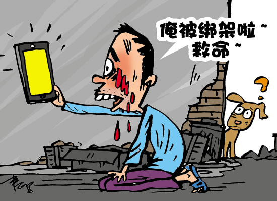 快过年了,成都武侯区的兰华为还欠下的7万元钱,到菜市场讨了些鸡血,再找个僻静的地方,把鸡血往脸上一抹,将手机摄像头对准跪地的自己,微信老婆的好友,说自己被绑架要老婆拿6万元赎人,却被警方识破。她找到他后气得对他一顿拳打脚踢。最后,兰华被治安拘留10天。(昨日成都商报)