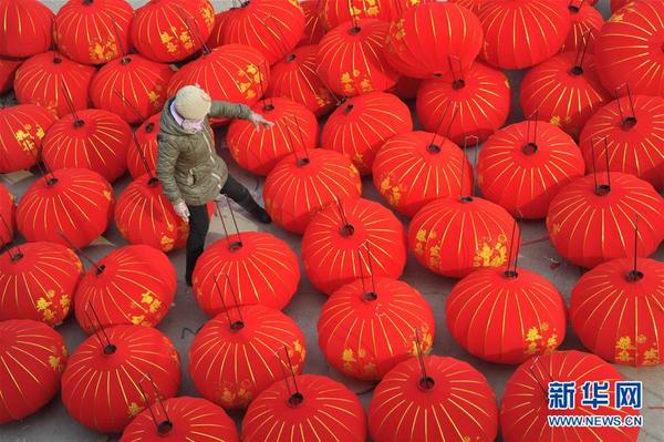 2月3日,工人在山西运城市稷山县杨赵村灯笼产业园区一家灯笼作坊内制作红灯笼。春节临近,灯笼产销集散地山西省运城市稷山县杨赵村灯笼产业园区内一片火红,工人们加班加点为全国各地客户赶制春节和元宵节的订单红灯笼,一派繁忙又喜庆的景象。新华社发(高新生 摄)