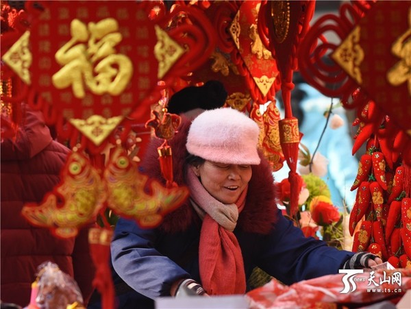 天山网讯(通讯员布仁托古斯摄影报道)2016年2月3日,在新疆库尔勒市萨依巴格市场,市民在选购年货。临近春节,年味越来越浓。库尔勒市街头张灯结彩,各大超市、年货市场春节装饰琳琅满目,呈现出一派红火的场景。