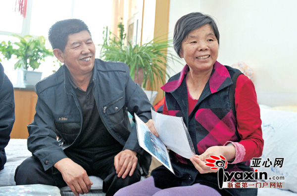 1月29日,乌市西山街道办新标社区的住户欧阳风美和李清,看着女儿如今家庭美满幸福,高兴不已。亚心网记者豆兴军摄