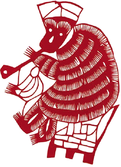 高密剪纸中的猴。