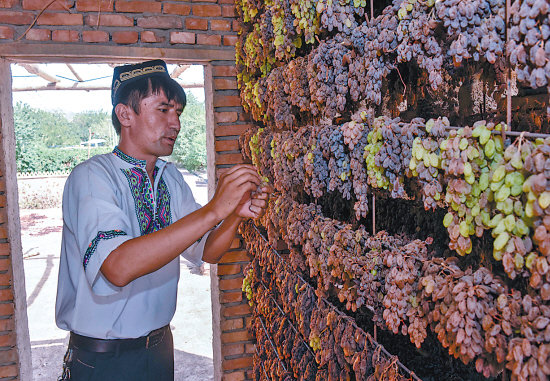正在晾干的新疆葡萄干 赵戈 摄