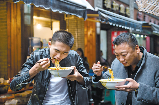 客人正在品尝重庆小面 刘潺 摄