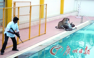 广州日报讯 印度南部卡纳塔克邦的一所学校中7日发现了一头豹子。当地警方出动麻醉枪将这位“不速之客”抓获。据报道,至少有4人在抓捕过程中受伤。 (宗禾)