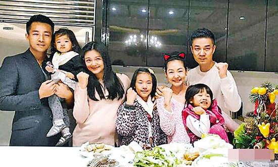 洪欣、张丹峰一家四口在除夕夜留下幸福的全家福。洪欣的儿子在微博晒出一家四口的合照,称和家人团聚很开心,和继父关系十分好的他还称:“又到上海陪爸爸了,一起过年是好的!”照片中,洪欣和张丹峰站在一起,儿子则抱着刚刚2岁的妹妹,一家四口开心合影。
