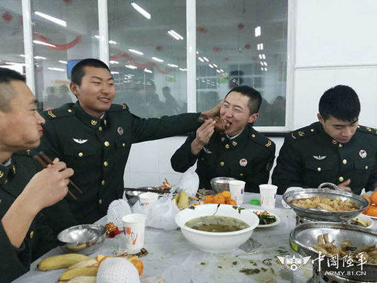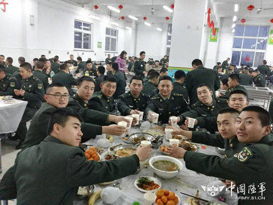 但有这样一群人,他们为了国家的安宁、为了万家的团圆,依然默默坚守在岗位上,用对祖国的忠诚诠释着真实版的“敬业福”,他们就是遍布在祖国大江南北座座军营里的那些“最可爱的人”。为了让广大官兵在部队过一个快乐祥和的春节,各部队都为大家精心准备了丰盛的“节日大餐”,既营造出浓浓的年味,也让大家感到部队大家庭的温暖。