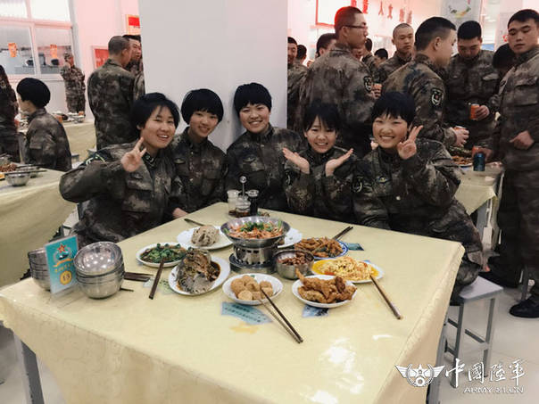 陆军第38集团军某装甲师年夜饭曝光 女兵笑靥如花(图)
