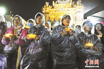 台湾民众雨中为台南受灾乡亲祈福 供图/CNSphoto