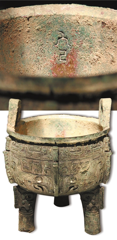 “同样是商朝使用的文字,金文与甲骨文又不尽相同。”中国文字博物馆专家陈士先介绍,甲骨文的书写,要用刀在龟甲和动物的骨头上契刻,所以笔画纤细、字形繁复,象形意义重。而金文主要用范模浇铸,故笔画浑厚、圆转自如,字形相对一致。