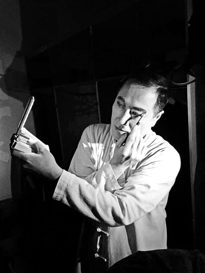 ▲杨立新在手机灯下化妆