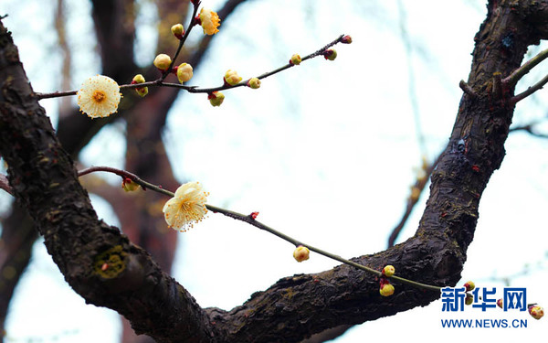 武汉东湖梅园是闻名遐迩的赏梅胜地,2万余株梅花已进入最佳观赏期,金钱绿萼、紫蒂白照水、洒金梅、美人梅等平时难得一见的珍贵品种,让游人流连忘返。(赵军 摄)