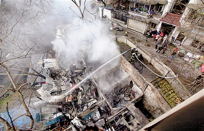 昨日,渝中区观音岩一建筑发生火灾,该建筑内多为易燃品,大火很快将房屋烧成废墟。本报记者 雷键 甘侠义 摄