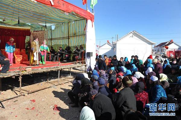 2月15日,宁夏灵武市郝家桥乡狼皮子梁移民新村村民在观赏草根剧团表演的秦腔剧目。地处毛乌素沙漠边缘的宁夏灵武市郝家桥乡狼皮子梁村是一座生态移民新村,在“十二五”期间,来自宁夏南部山区的移民陆续搬迁至此,开始了新生活。春节期间,爱好秦腔的村民组成的草根剧团为村民们免费演出,给移民新村增添了浓浓的节日气氛。新华社记者 彭昭之 摄