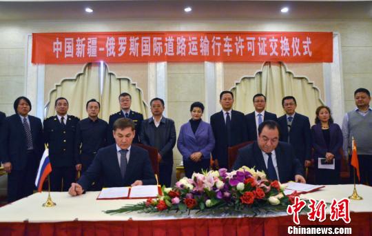 中新网乌鲁木齐2月16日电 (记者 孙亭文)16日,中国新疆—俄罗斯国际道路运输行车许可证交换仪式在乌鲁木齐举行。中国新疆交通运输厅与俄罗斯联邦运输部联邦预算局汽车运输局远东分局在乌鲁木齐首次交换《中俄货运车辆经哈萨克斯坦共和国领土临时过境货物运输许可证》。