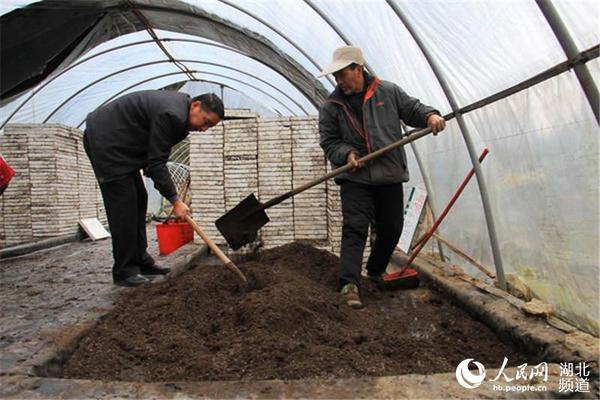 人民网湖北咸丰2月16日电,2月16日,湖北省恩施土家族苗族自治州咸丰县高乐山镇农业技术员刘昌庆正在育苗基地指导服务人员正在装填基质。新春时节是该县农业生产播种育苗季节,各农业专业合作社的育苗服务人员在农技部门干部职工的指导下,抢抓农时,积极投工投劳开展农业生产播种育苗工作。(周方奎)
