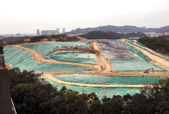 目前居住和生活在华南板块的番禺街坊,最关心在南沙大岗建设的广州市第五资源热力电厂进度。因为广州市各级官员在不同场合都曾表态,称第五资源热力电厂建成后,会关停目前处在华南板块核心区域的火烧岗垃圾填埋场。羊晚记者16日中午在火烧岗填埋场旁的番山创业中心看到,此前因为填埋了78米高的垃圾而被戏称为“番禺第三峰”的火烧岗西北区域(见上图),已停止运作并种树复绿;现有进场垃圾主要在火烧岗东南区填埋。尽管管理方已经铺了塑料薄膜,并喷洒除臭剂以减轻扰民,但记者到场期间,看起来高大上的番山创业中心,室外区域可闻到浓烈垃
