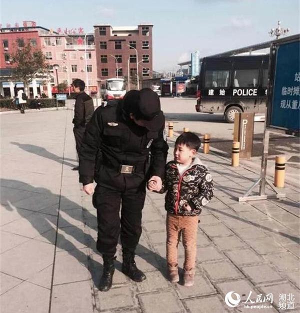 16日16时许,恩施州建始县公安局特警大队谭丕显、宋胜伟等几名队员正在建始县火车站执行武装巡逻,当行至车站广场时,发现一名三、四岁的小男孩独自一人泪流满面地站在广场中央,队员们立即上前询问情况。