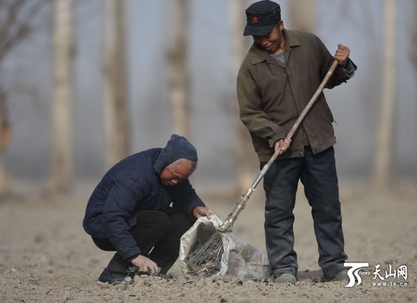 天山网讯(通讯员布仁托古斯摄影报道)2016年2月17日,在新疆和静县巴润哈尔莫墩镇哈尔乌苏村村民刘长江在翻田平整土地。人勤春来早,春耕备耕忙。浓浓的年味还在新疆和静县巴润哈尔莫墩镇四处弥漫,尽管银装素裹的田野还是一片寂静,但农民们早已陆陆续续购买化肥、平整土地等积极备耕。